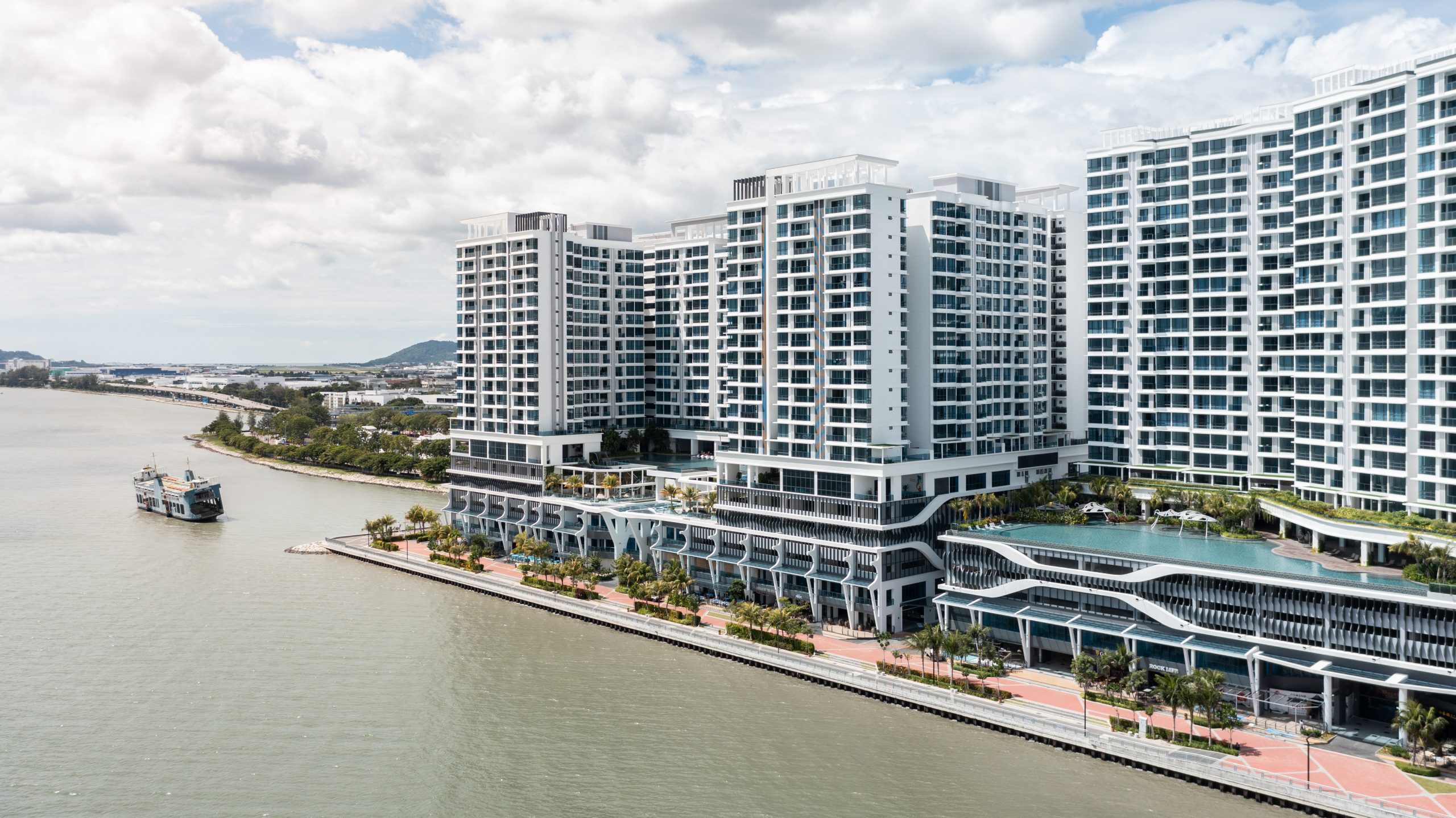 A freehold residential development comprising 2-block of condominium towers and 14 units of 3.5-storey villas built on a podium in Relau, Penang by Iconic Development.