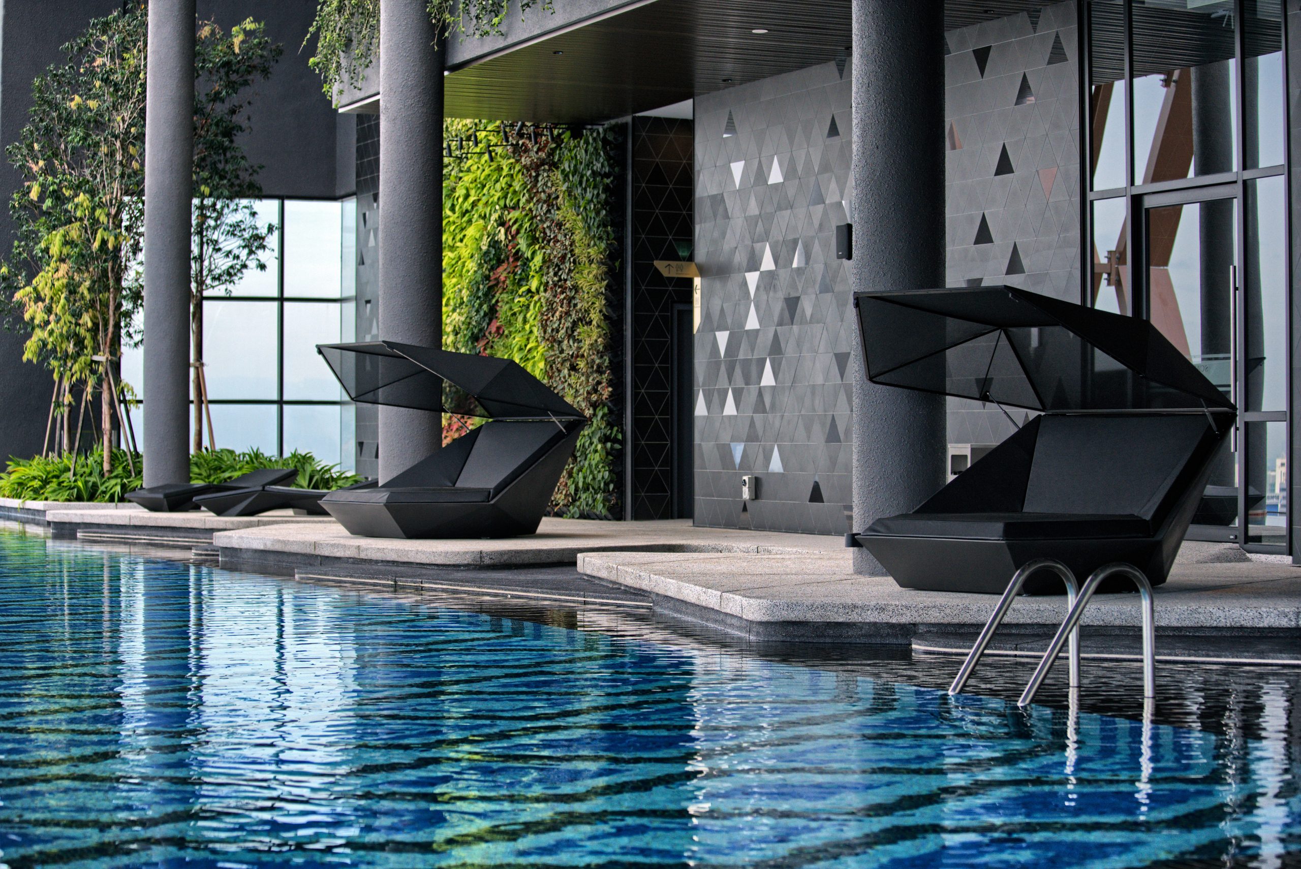 Admire the mesmerising view of the city of Kuala Lumpur from the 31.45-metre swimming pool on Level 47, which is interspersed with a mix of atmospheric ambience, textures and a colour palette of mosaic tiles in refreshing colour coordination of midnight black, azure blue and arctic blue.