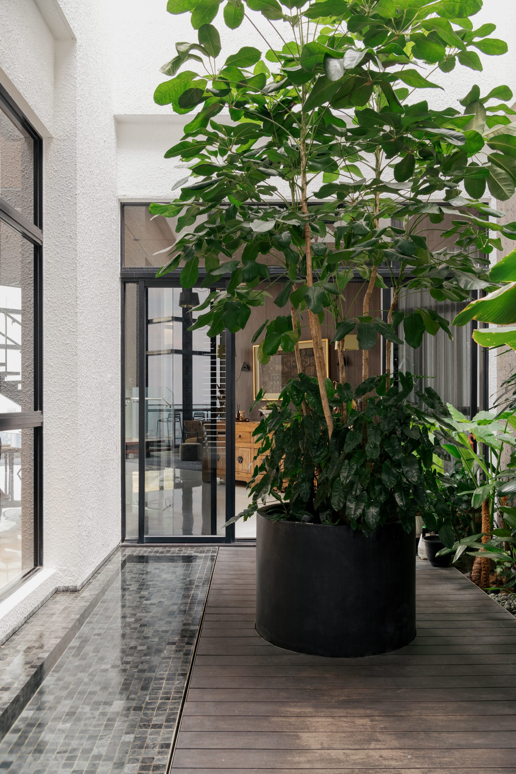Adjacent to the Master Suite, the private Study Room overlooks a lush courtyard, drawing in natural light and greenery. This tranquil setting fosters a strong biophilic connection, providing an environment that encourages calm focus and contemplative balance.